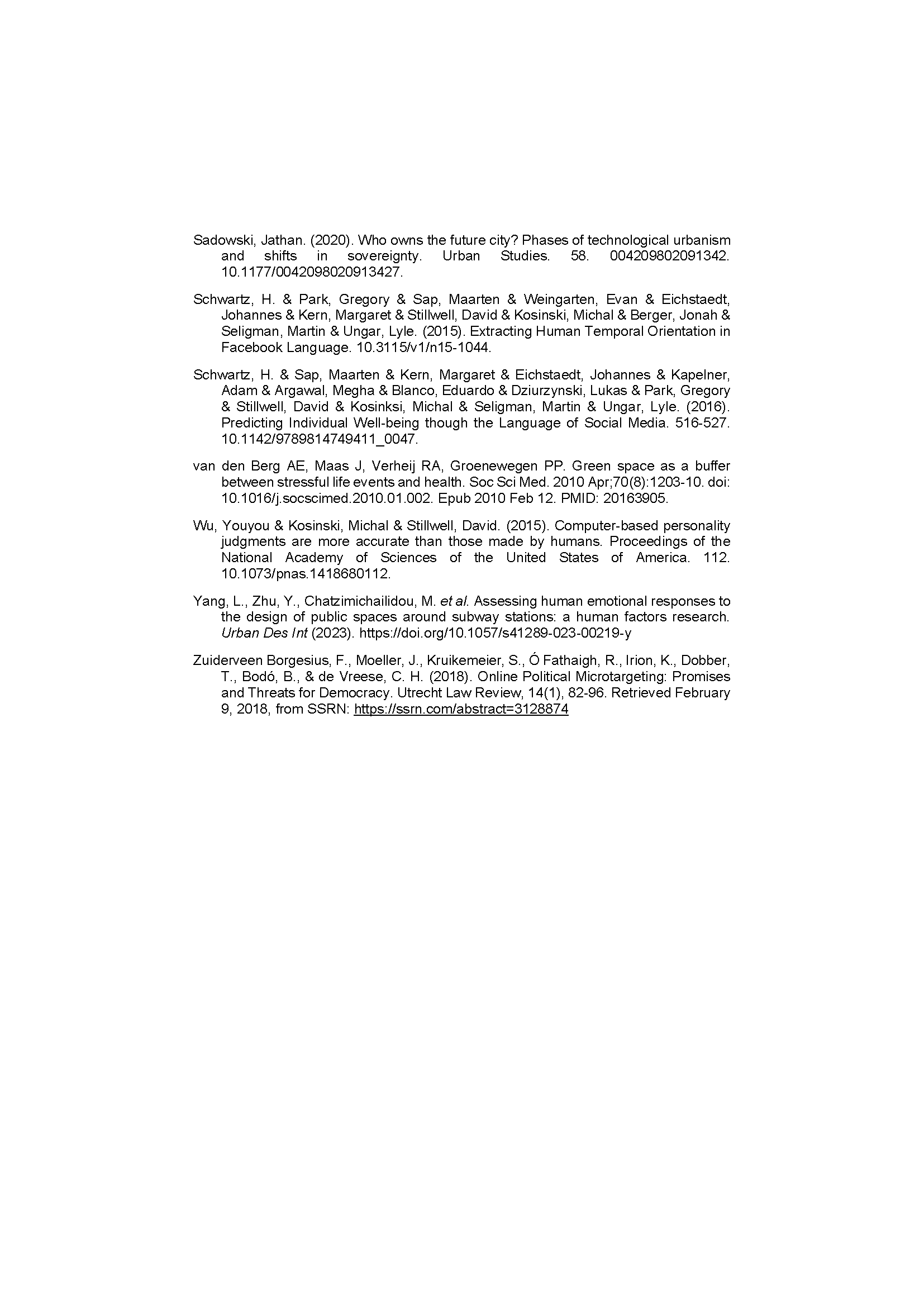 Barashkov, Julia; "Customising Urban Joy: Urban Planning Mechanisms for the Mass - Customisation of Cities, through the Quantifiable Nature of Joy Using Geo-tagged Social Media Data", p. 41